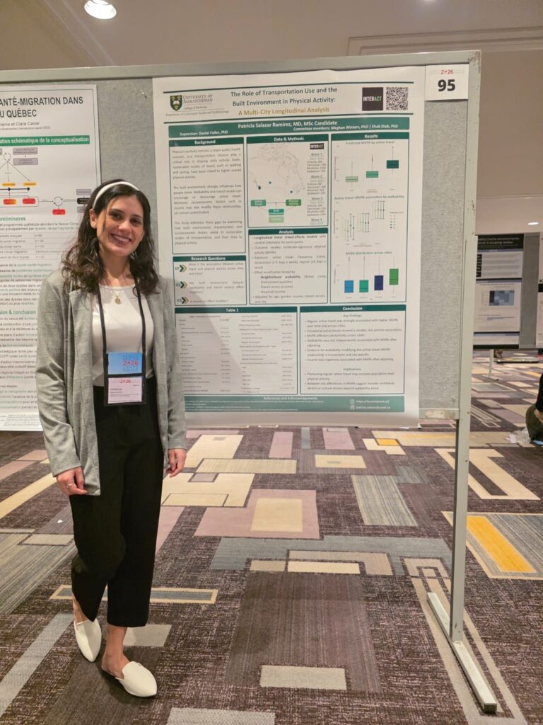 My name is Patricia Salazar Ramírez, and I am a physician from Mexico currently pursuing an MSc in Community and Population Health Sciences at the University of Saskatchewan. My research focuses on understanding how social and environmental factors influence health, particularly in urban settings with a focus on healthy cities.